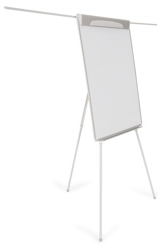 Provisto de 2 pinzas superiores de plástico para bloc de papel con 2 brazos retráctiles para colocar hojas de papel con imanes, con 3 patas telescópicas.