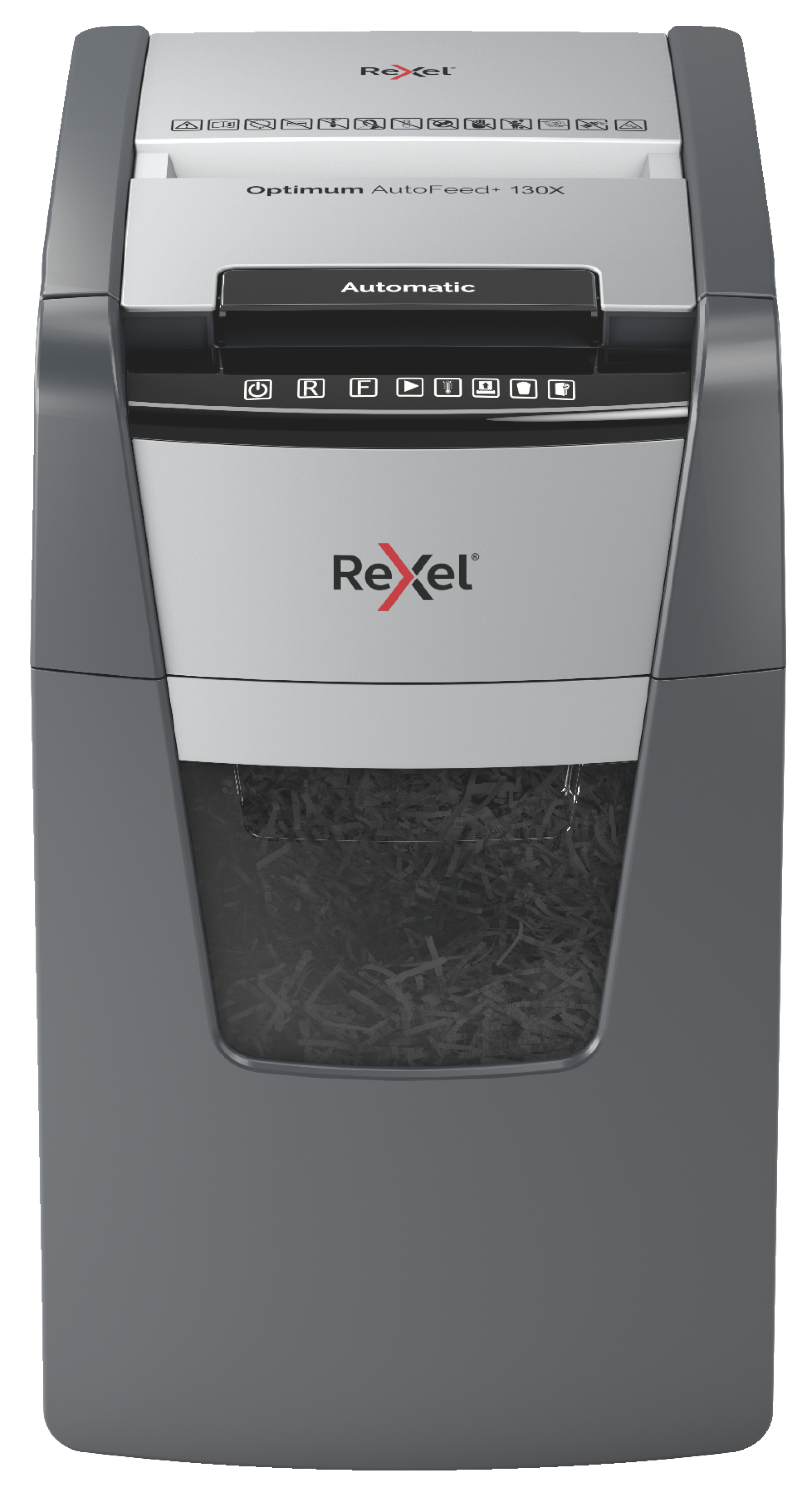 La destructora de corte en partículas Optimum AutoFeed 130X tritura automáticamente hasta 130 hojas de papel A4 (80 grs.) a la vez, en partículas P-4 (4x28 mm). Esta destructora de alimentación automática es una trituradora de oficina sofisticada, con una papelera extraíble de 44 litros. No es necesario alimentar manualmente el papel, ni quitar grapas y clips de papel primero, esta destructora de papel automática hará todo el trabajo por ti.