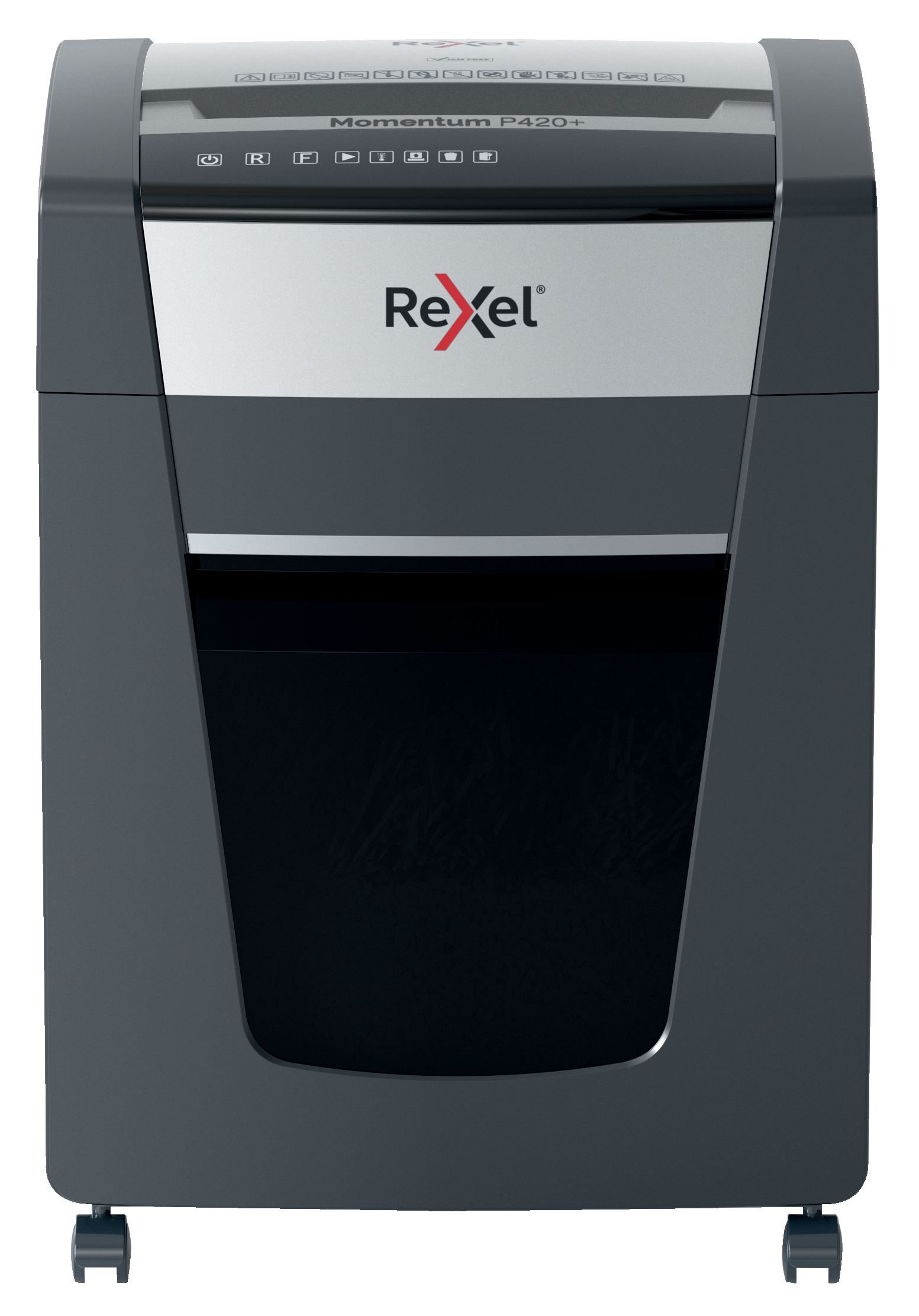 Las destructoras de papel sin atascos Rexel Momentum son ideales para destruir documentos confidenciales en la oficina. La destructora P420+ destruye hasta 20 hojas de papel A4 (80 grs) de una sola vez a través de la ranura de alimentación manual en partículas P-4 (4x35mm). La tecnología de detección activa mide el número de hojas que se alimentan en tiempo real para detener los atascos y los errores de alimentación del papel; se indica mediante un LED rojo en el panel de control. Esta destructora de papel no funcionará hasta que el número de hojas se reduzca por debajo de la capacidad máxima de hojas o la alcance. Esta destructora está diseñada para un uso moderado o intenso gracias a su gran capacidad de hojas, su gran papelera de 30 litros y su larga duración de hasta 4 horas. No es necesario alimentar manualmente el papel, ni quitar las grapas y los clips primero.