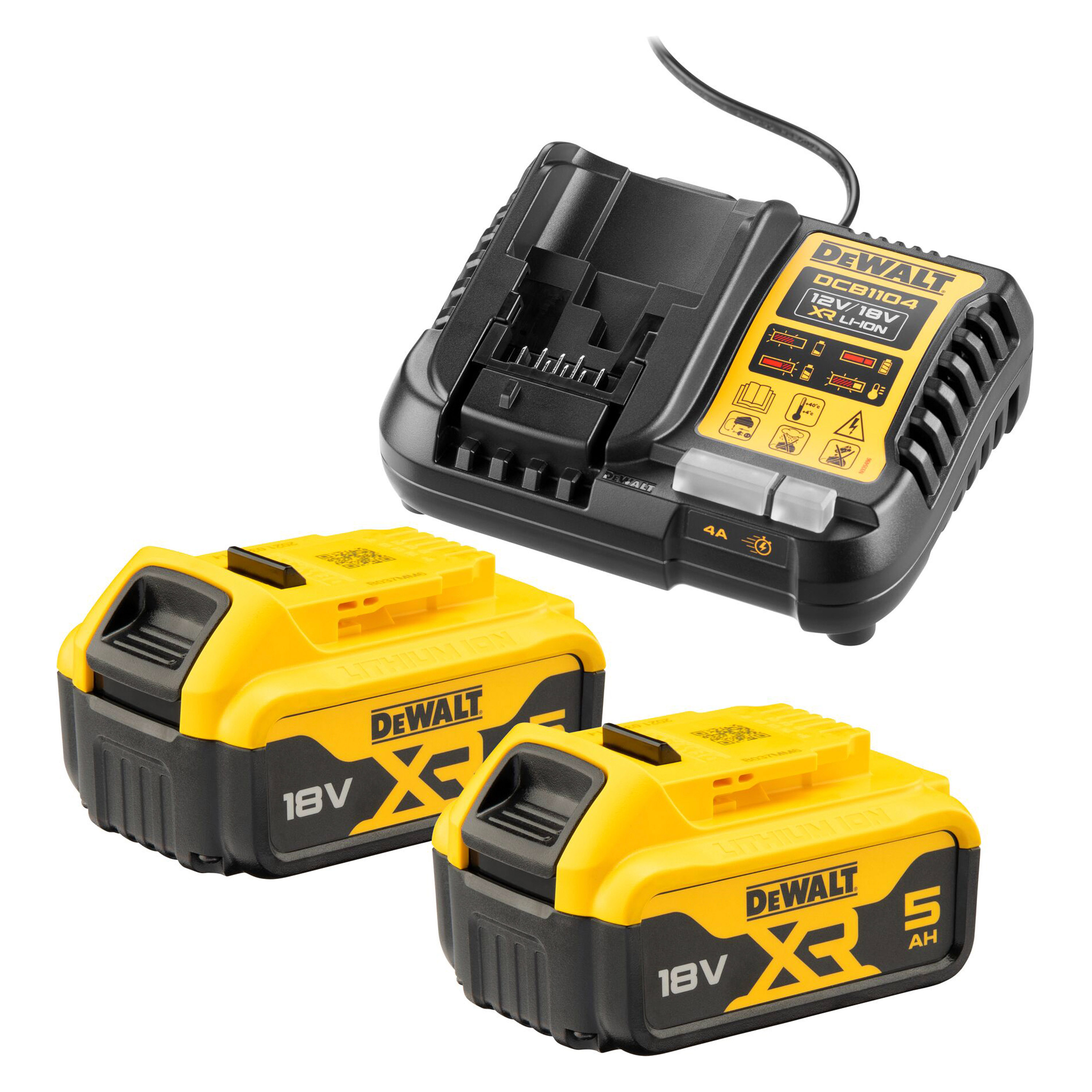 Descripción detalladaKit de 2 Baterías carril XR 18V Li-Ion 5Ah y Cargador XR 12V-18V carril Li-Ion.La corriente de carga de las baterías es de 4 A.Tiempo de carga aproximativo de 80 min.