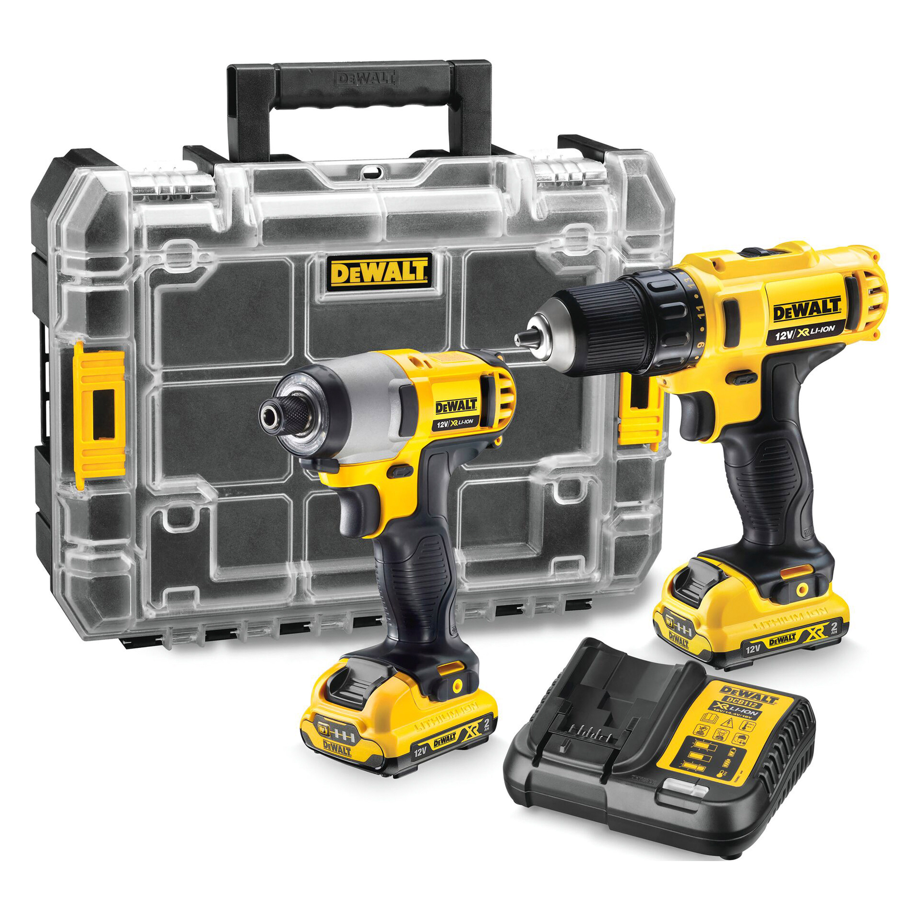 El Kit contiene: Taladro Atornillador DCD710, Atornillador de Impacto DCF815 y Organizador TSTAK V