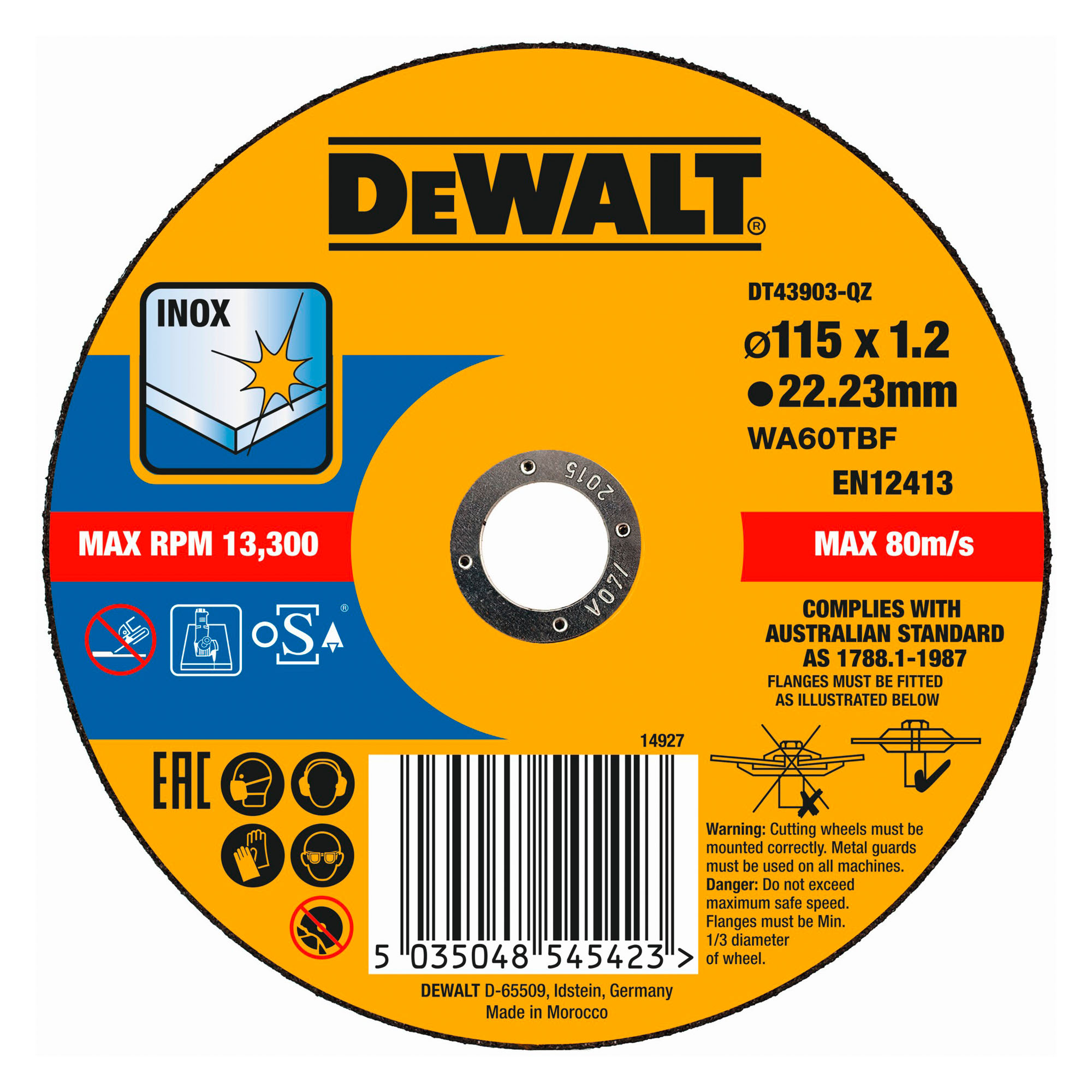 Disco de corte plano INOX con grano profesional de óxido de aluminio Thin Cut 115 x 1.2 x 22.23mm.