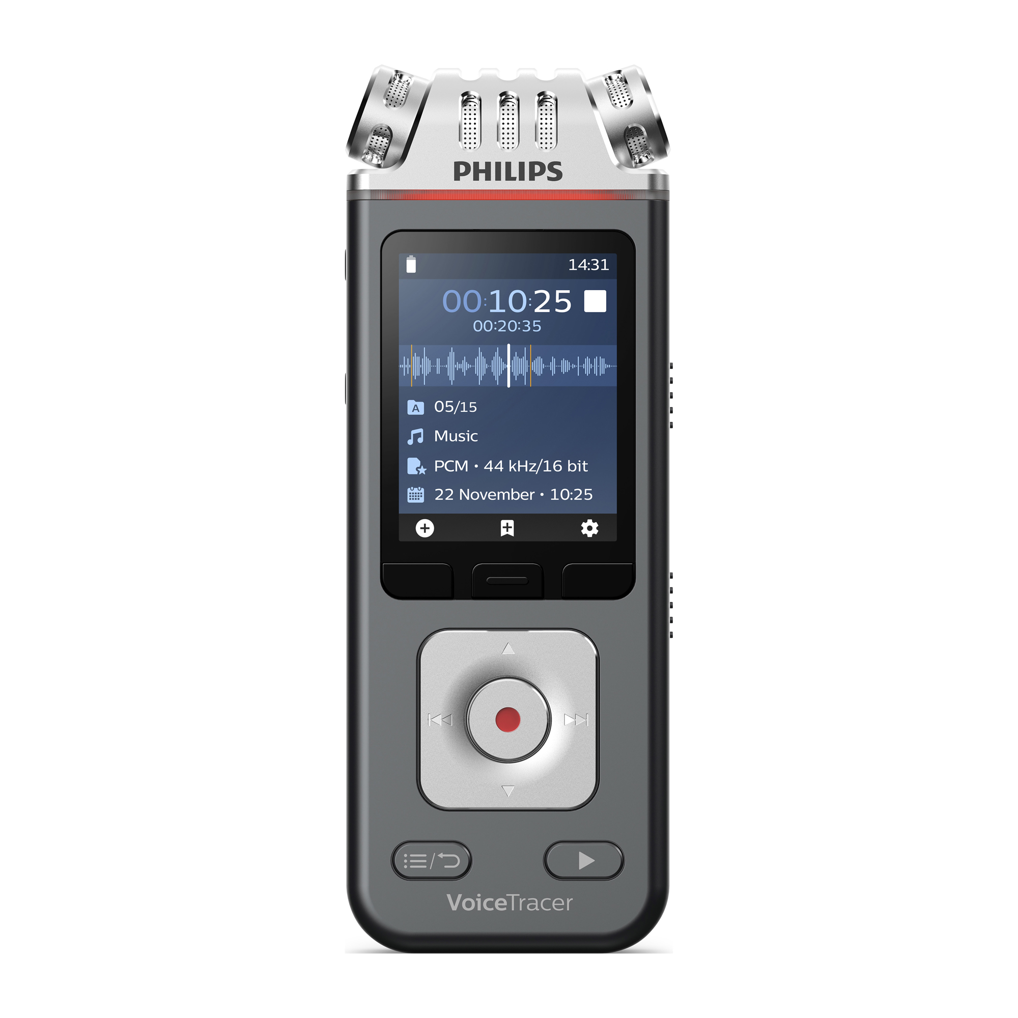 Función de pregrabación. Grabación en formato MP3 para transmitir y compartir archivos fácilmente.