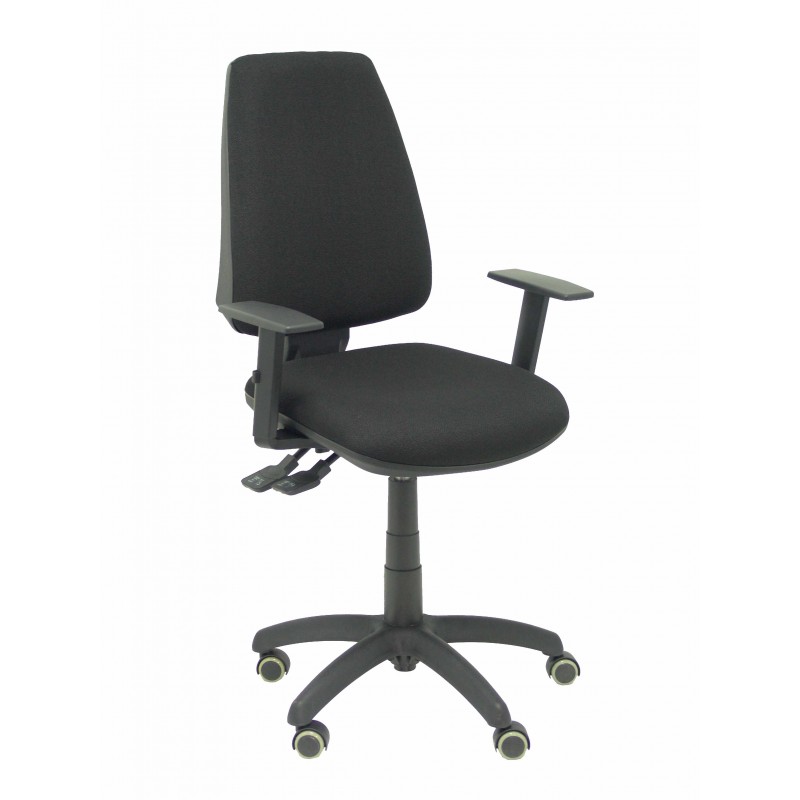 Regulable en altura mediante cilindro de gas de 14 cm Mecanismo sincro que permite la regulación del respaldo y el asiento por separado Asiento y respaldo tapizados en tejido BALI color gris Base poliamida de alta resistencia de 5 radios y 55 cm de diametro, en color negro Ruedas de parquet, giratoria 360º, telescópico color negro y brazos fijos