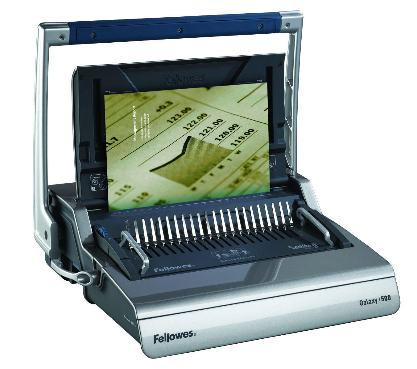 La encuadernadora Galaxy 500 es ideal para un uso intenso en oficina de alto rendimiento, puede encuadernar hasta 500 hojas. Fácil de utilizar y con características para dar a cualquier documento un acabado profesional, se trata de una máquina esencial en una oficina de alto rendimiento, con palanca de perforación ergonómica que permite perforar hasta 28 hojas. Su Sistema Satélite permite perforar y encuadernar de manera simultánea lo significa que se puede separar el bloque de encuadernación del bloque de perforación, lo que facilita que el trabajo se realice por varios usuarios a la vez, obteniendo así una productividad máxima.