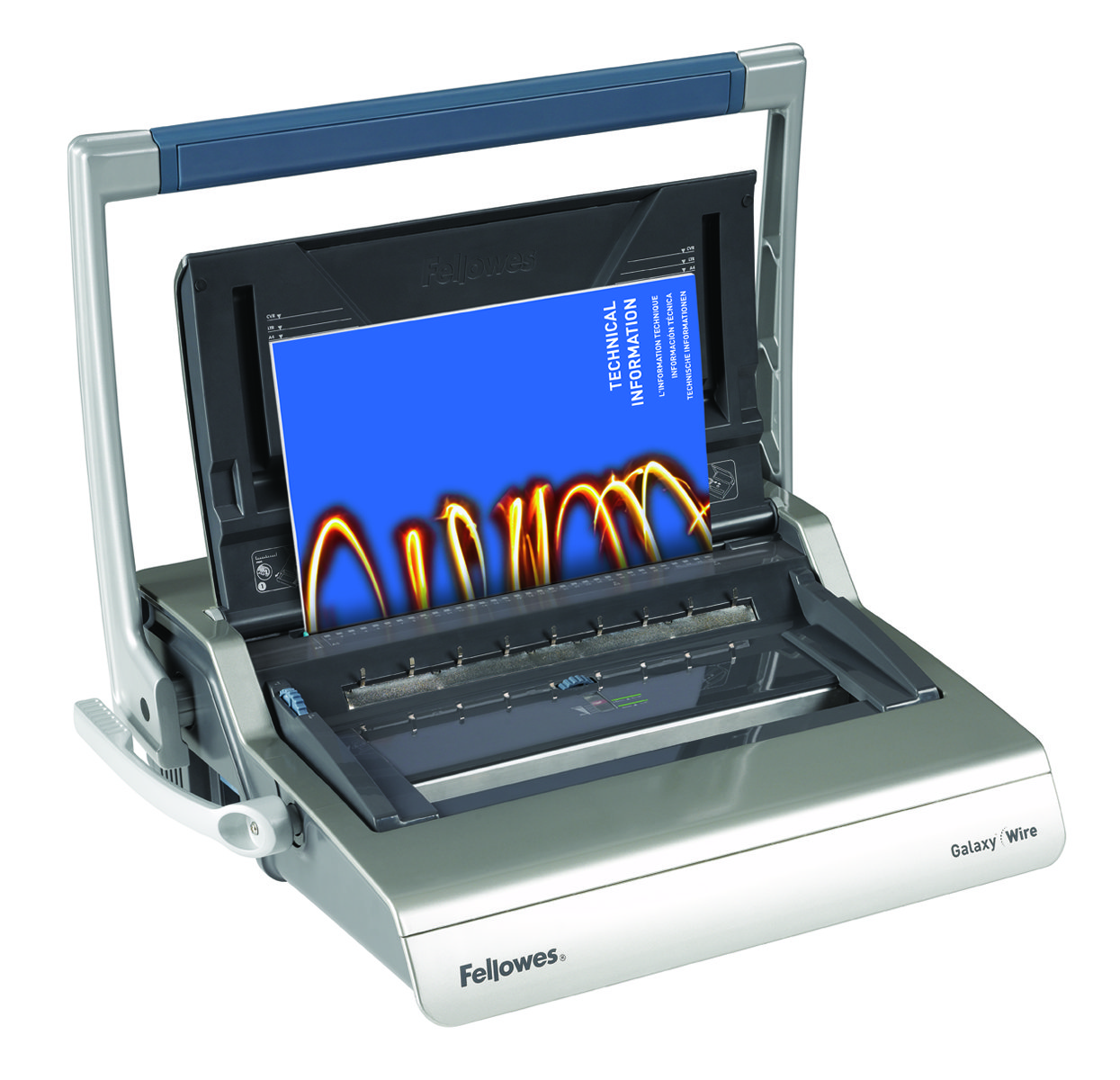 Encuadernadora de wire Galaxy con sistema de encuadernación Wire para obtener documentos con acabados profesionales y cómodos de utilizar. Perfora hasta 20 hojas y encuaderna hasta 130 hojas A4 de 80 gr con wires de paso 3:1 / 14mm. Tiene una palanca de taladro de gran tamaño, para realizar el mínimo esfuerzo y cuenta con control de cierre pre ajustable según el diámetro de wire a utilizar, además de una bandeja frontal para guardar los consumibles. Cuenta con una bandeja de residuos con ventana de extracción para evitar atascos y la carga vertical de los documentos asegura una perfecta alineación, además de contar con un margen lateral regulable. Incluye kit de inicio de encuadernación para 20 documentos. Esta máquina tiene una garantía de 2 años.
