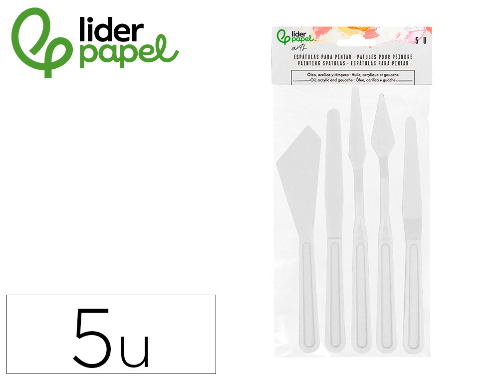 Añade versatilidad a tu kit de herramientas artísticas con las espátulas para pintura de plástico Liderpapel. Este juego incluye 5 espátulas de tamaños surtidos, diseñadas para una amplia variedad de técnicas y aplicaciones. Las espátulas de plástico son ligeras y flexibles, ideales para mezclar, esparcir y aplicar pintura con facilidad y precisión. Cada espátula está fabricada con plástico resistente de alta calidad, garantizando durabilidad y un rendimiento óptimo. Los mangos ergonómicos proporcionan un agarre cómodo y seguro, permitiendo un control preciso en cada movimiento. Perfectas tanto para artistas profesionales como para aficionados, estas espátulas son una herramienta esencial en cualquier estudio de arte. Ya sea que te trabajes con óleos, acrílicos o pastas de modelar, las espátulas de plástico Liderpapel te ayudarán a lograr texturas y efectos únicos en tus obras.