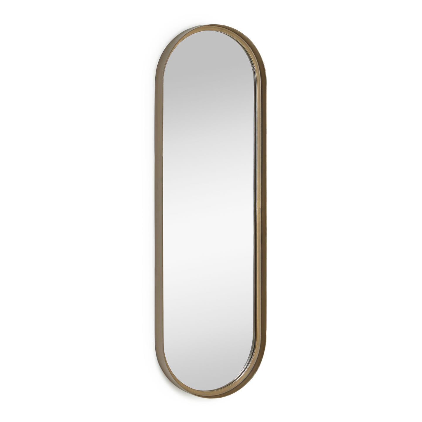 Ojo que vienen curvas, y te encantará. El espejo Tiare tiene una forma alargada para verte con parte de tu outfit y un marco de acero con acabado dorado que está tratado para conseguir un efecto envejecido que le da un toque trendy en tus espacios.