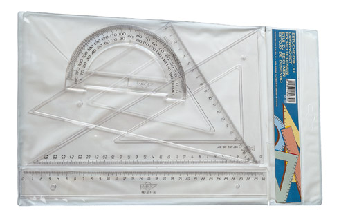 Descripción detalladaConjunto para dibujo: regla, escuadra, y cartabón de 30 cm y semicírculo de 15 cm. Todo fabricado en poliestireno inyectado.