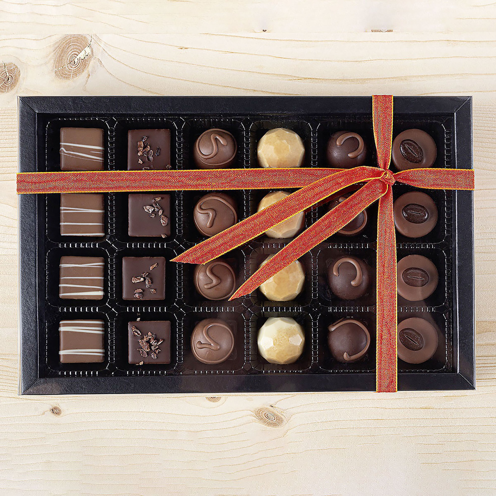 Estuche 24 Bombones surtidos artesanos envuelto en papel de regalo
