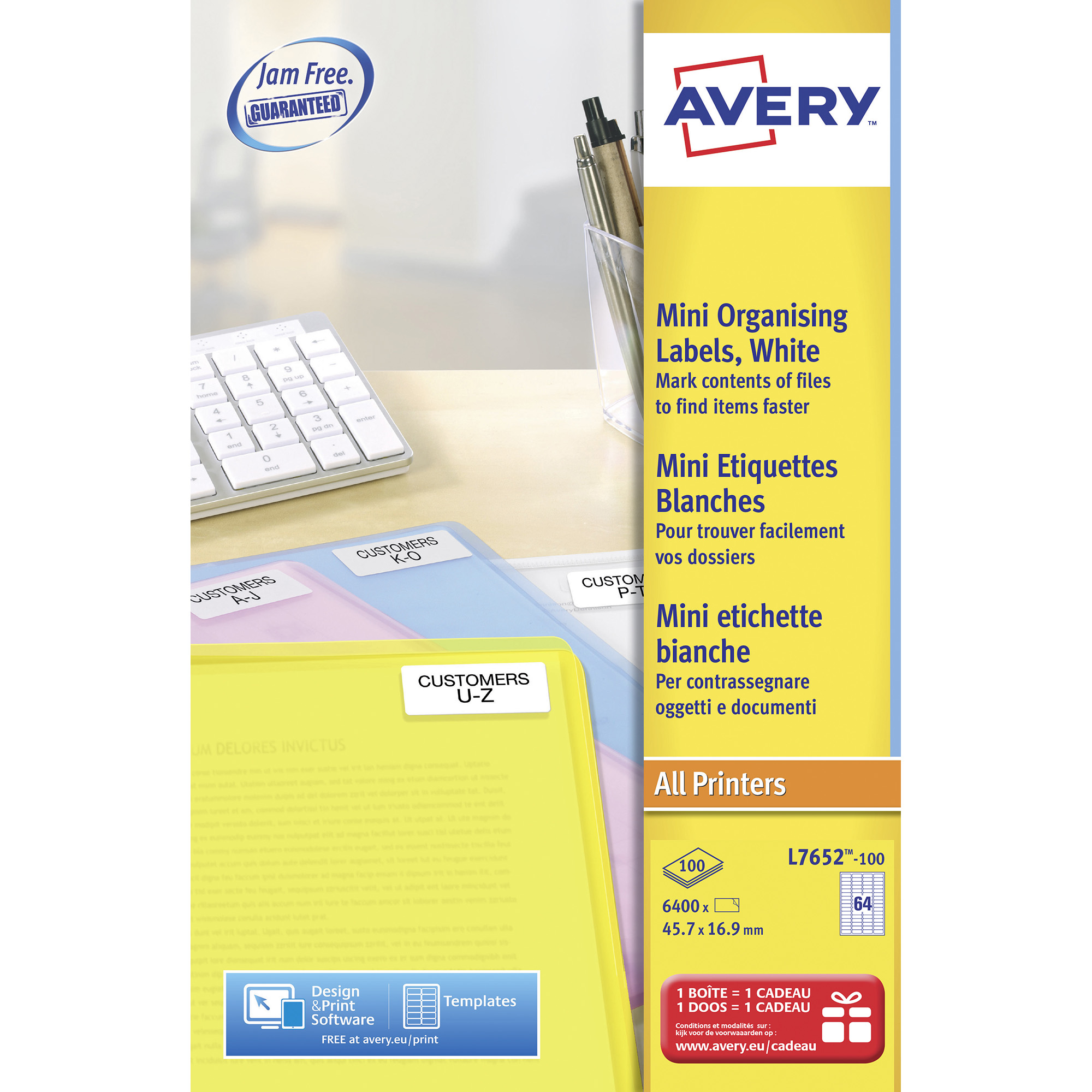 Etiqueta dirección láser 45,7 x 16,9 mm Avery L7652-100 blanca - Caja de 6400