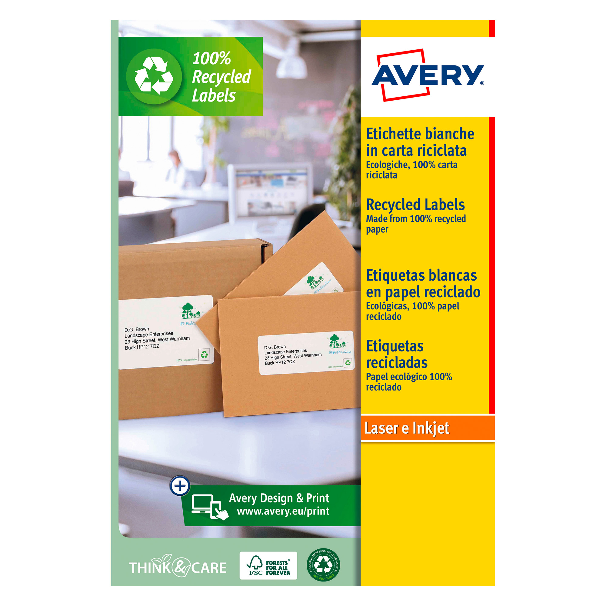 Para impresoras láser. Esquinas redondeadas. Fabricado en papel 100% reciclado, etiquetado Blue Angel, reciclable.