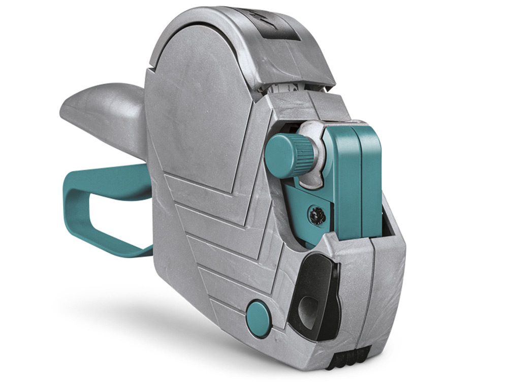 Dispositivo profesional de etiquetado, adecuado para marcaje de precios, fecha etiquetado y etiquetado de artículos, de lotes, de máquinas, número de empleados, etc. Ergonómico, 1 línea, apto para etiquetas 22 x 12 mm. 8 caracteres en línea (con caracteres alfanuméricos altura de 4,3 mm). Monedas: CHF, KR., SK, Huf, ZT hrk, k , Lei. Listo para usar con etiquetas de papel y tinta.
