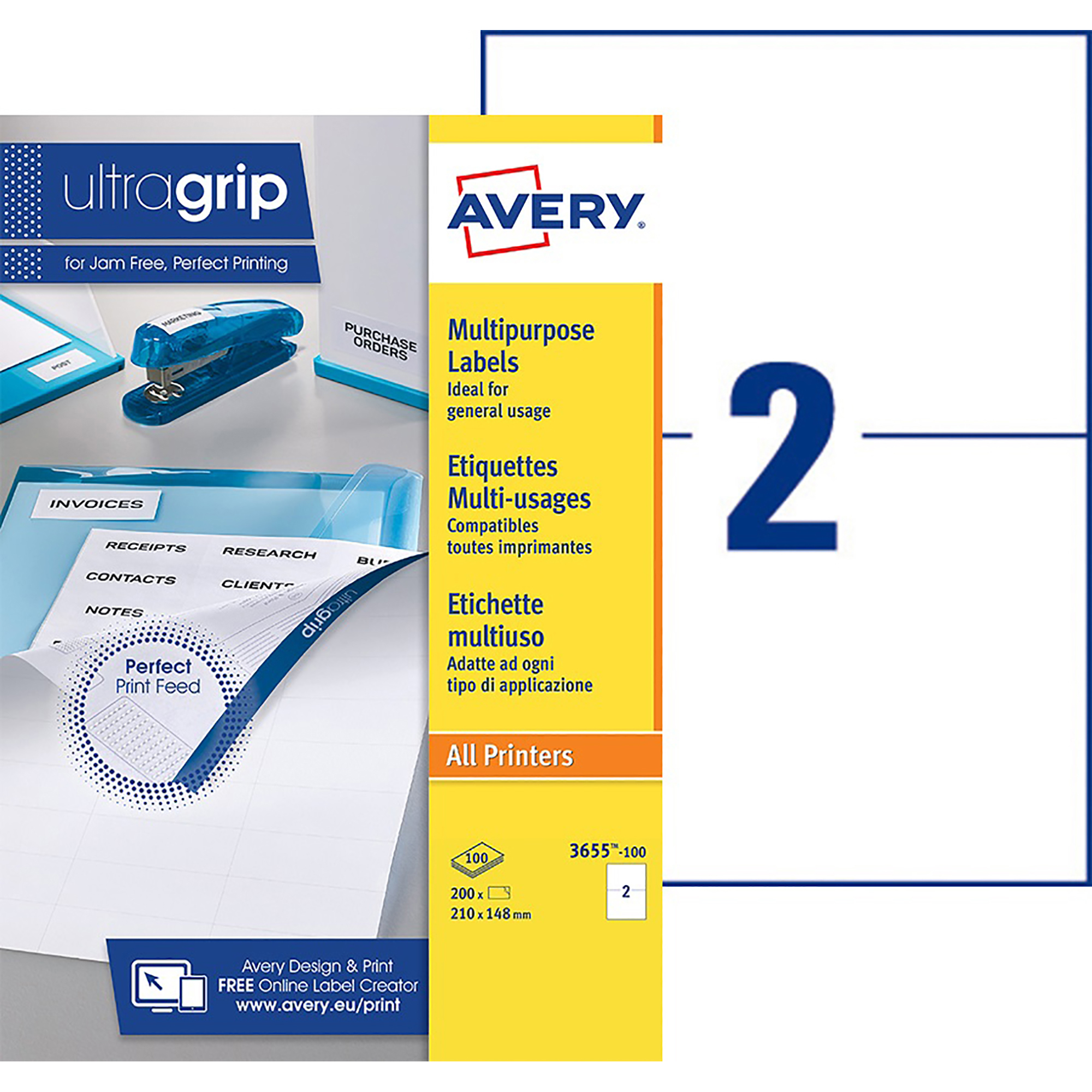 Etiquetas para direcciones impresoras de tinta y láser 210 x 148 mm Avery 3655-100 blanca - Caja de 200