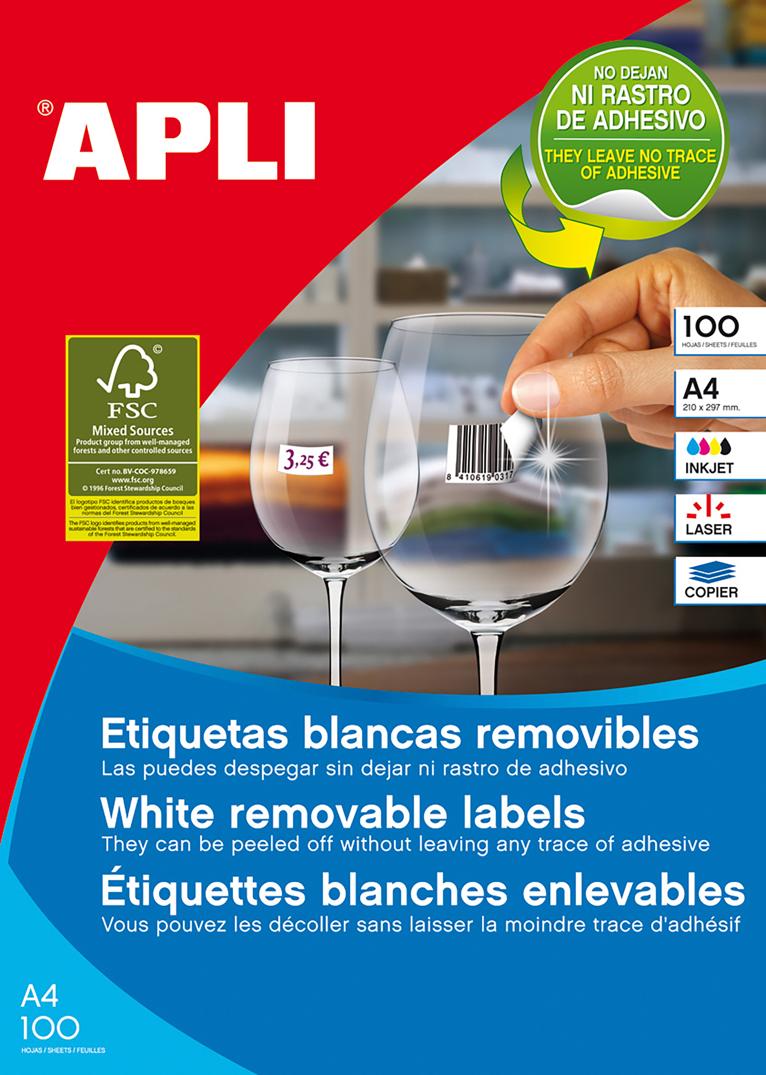 Etiquetas autoadhesivas blancas para impresoras inkjet, láser y fotocopias.