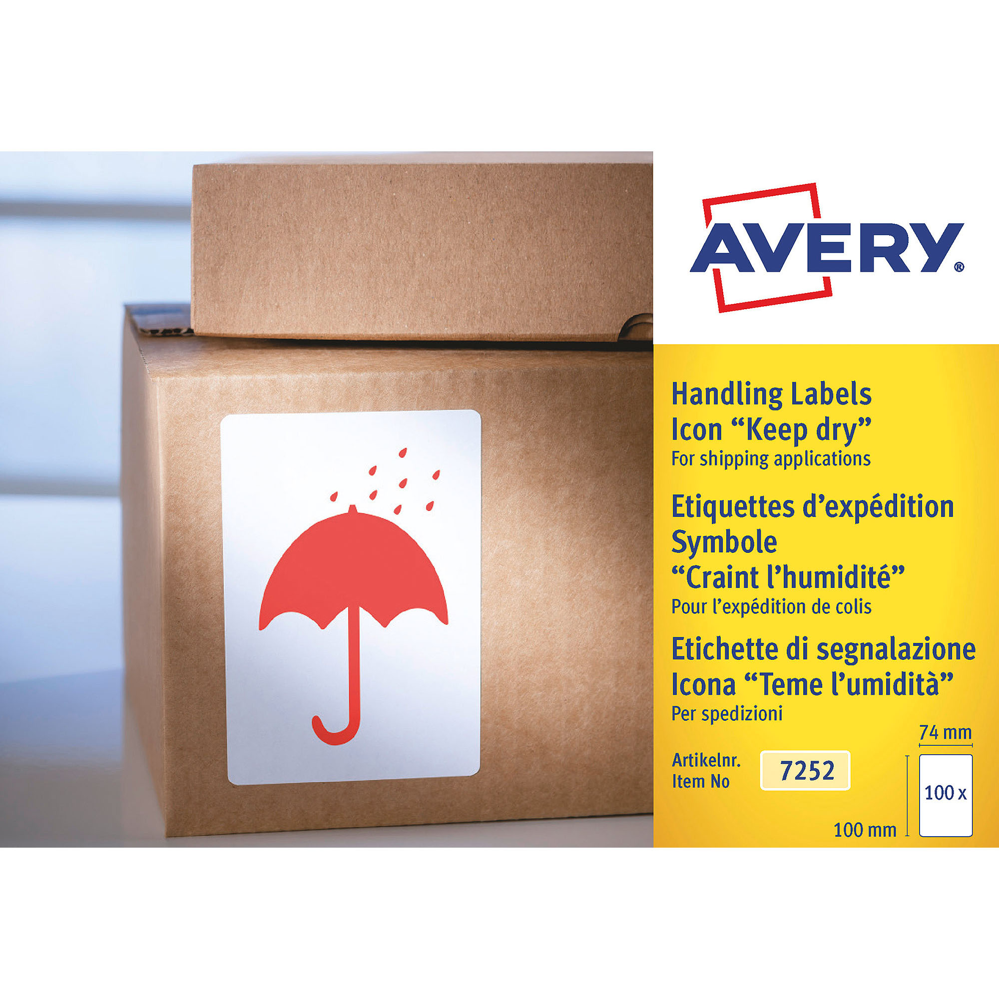200 etiquetas "mantener alejado del agua" de 74 x 110 mm.