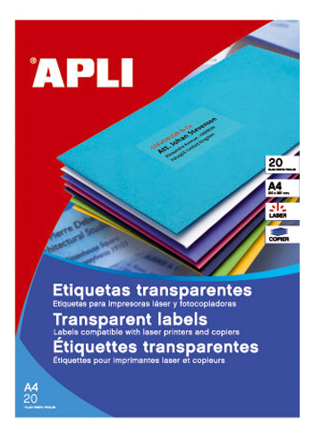 Etiquetas de poliéster translúcidas para impresión en láser y fotocopiadora. Resistentes a la intemperie.