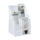 Descripción detalladaPerfecta rigidez para cualquier altura. Elementos yuxtaponibles para formar conjunto. Polietileno cristal transparente. 4 compartimento. Formato 29,7 x 21 cm. (A4)
