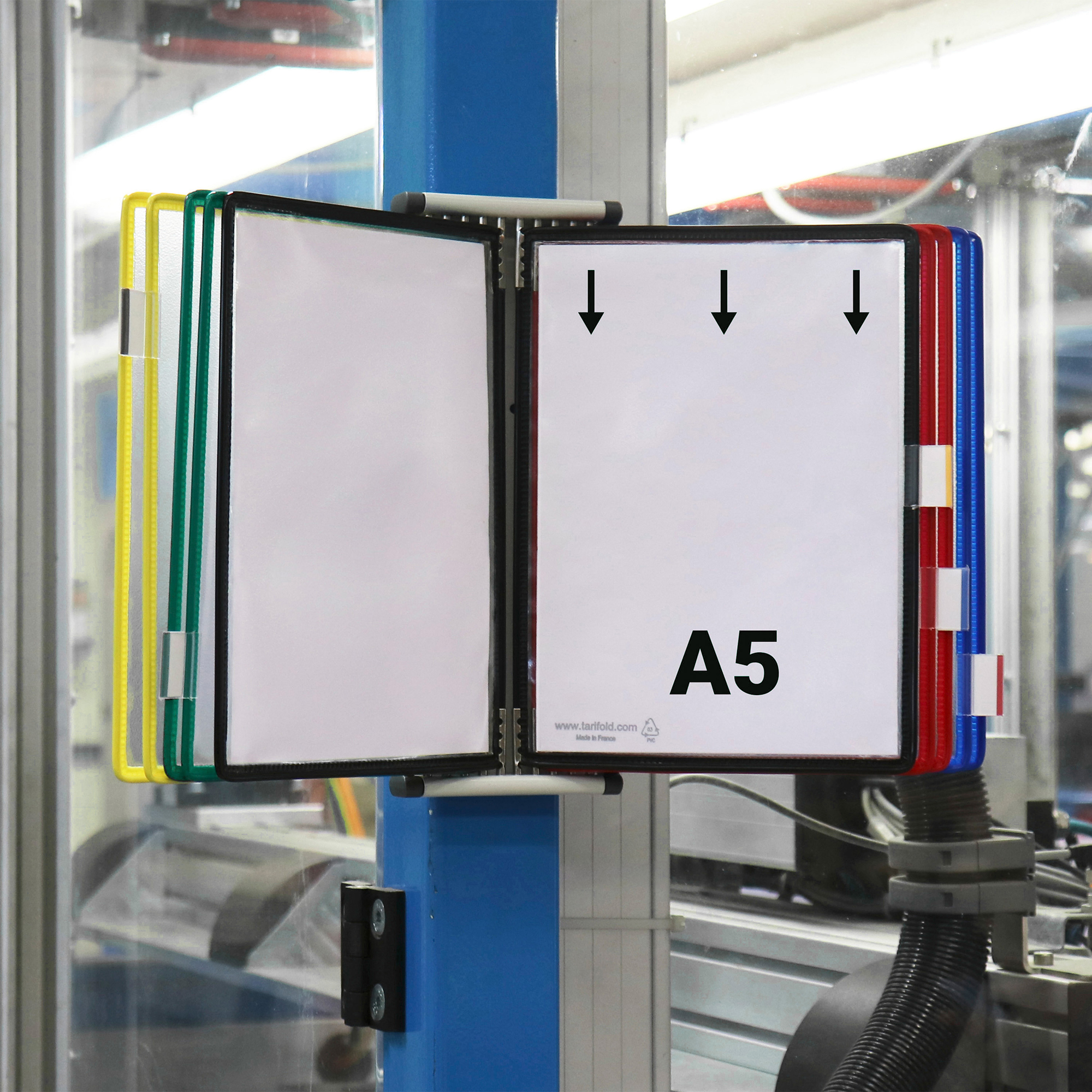 El expositor de pared metálico Tarifold permite mostrar información importante de forma clara y accesible. Protege y organiza documentos de uso frecuente, facilitando su consulta inmediata. Es robusto, fácil de instalar y ampliable sin límites al acoplar varios módulos entre sí, lo que lo convierte en una solución eficaz para la comunicación visual.
