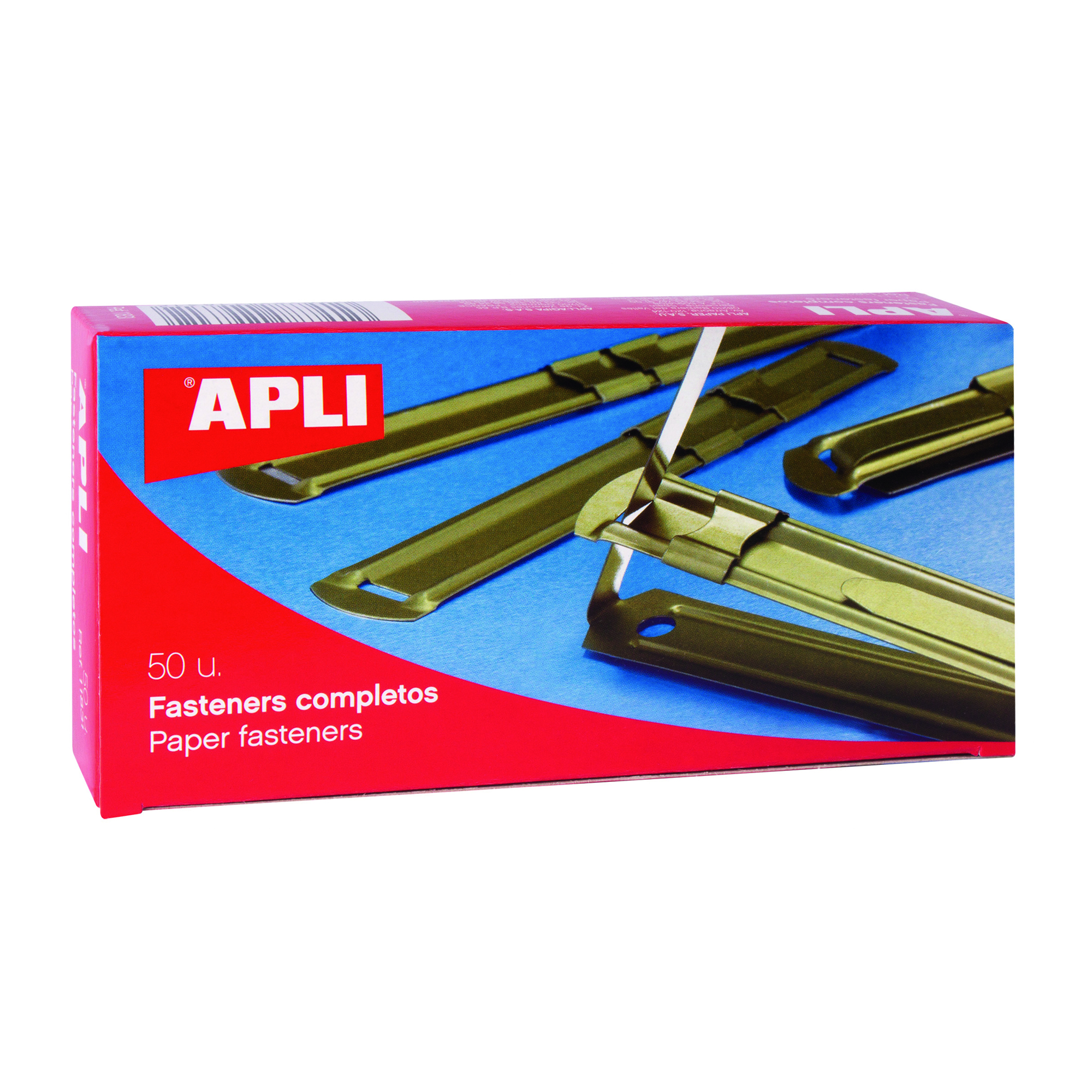 Fásteners metálicos completos con lengüeta y cierre compresor en color dorado de 90 x 12 mm. Aptos para todo tipo de documentos con dos perforaciones estándar. Cada caja contiene 50 fásteners. Moldeable y fácil de usar: inserte las hojas previamente perforadas en la lengüeta, deslice el compresor hasta el tope y ciérrelo. Ideales para sujetar, encuadernar y organizar grandes cantidades papel: apuntes, fotocopias, álbumes escolares, archivos, expedientes, sentencias, etc. o crear libretas y álbumes personalizados.