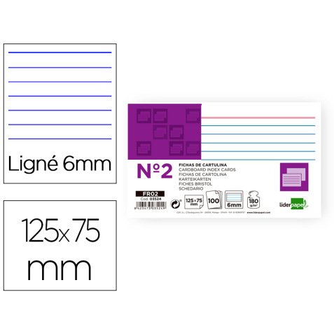 Descripción detalladaFichas rayadas y lisas. Cartulina de 180 g/m². Ideal para fichas bibliográficas. Paquetes de 100 hojas.