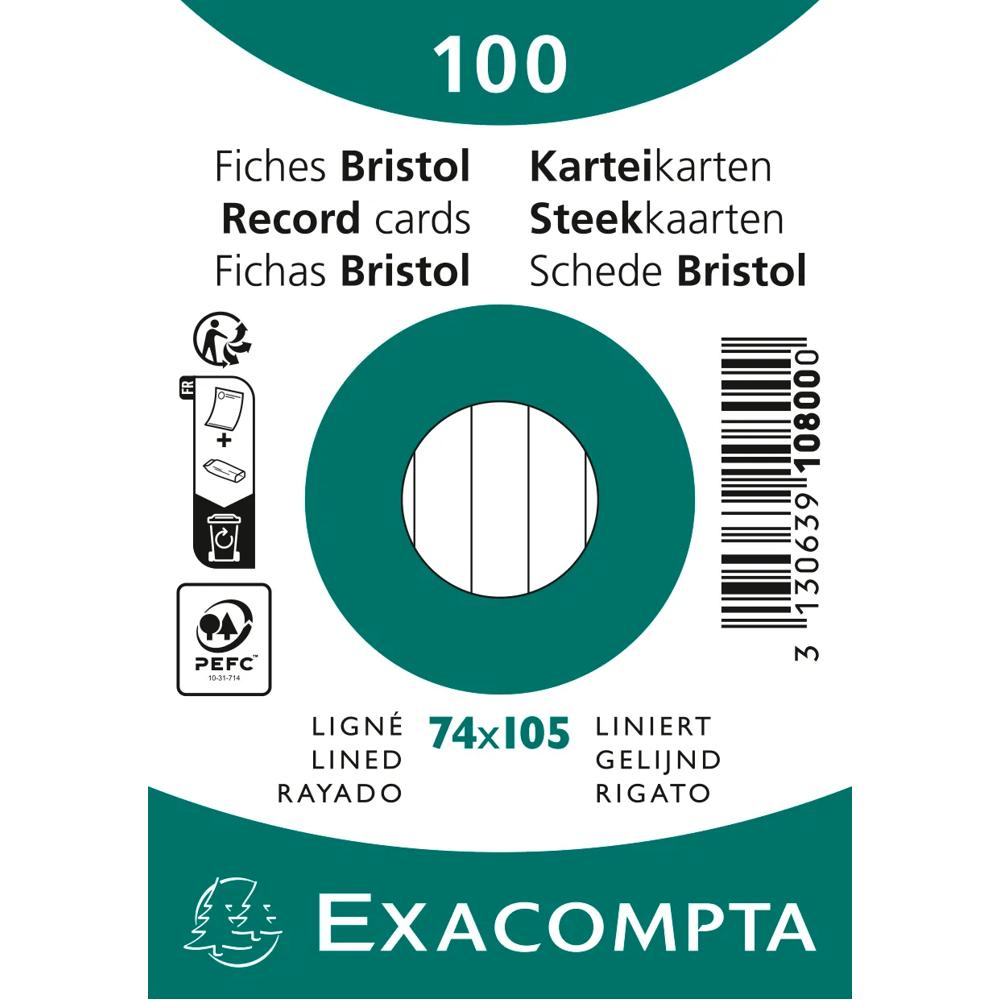 Fichas de cartulina bristol 205 g/m2 - Rayado - 74x105 mm - Blanco