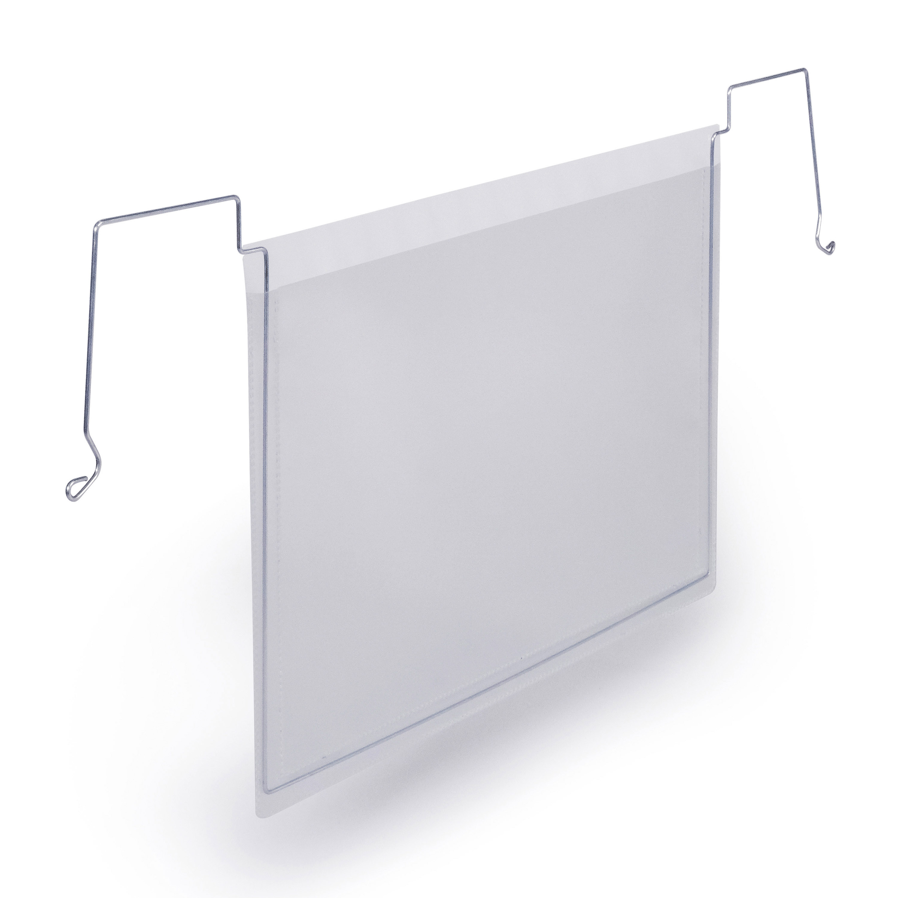 Descripción detalladaFunda para documentos de lámina de polipropileno con alambre flexible galvanizado para una fijación fácil y seguraPara el uso en contenedores de transporte, jaulas paletizadoras, marcos superponibles de madera y cajas de cartón para palésApta para escanear y neutra para los documentosRápida sustitución de etiquetasFormato interior: A4 horizontal / 297 x 210 mm (An. x Al.)Dimensiones exteriores con correa de alambre: 535 x 280 mm (ancho x alto)