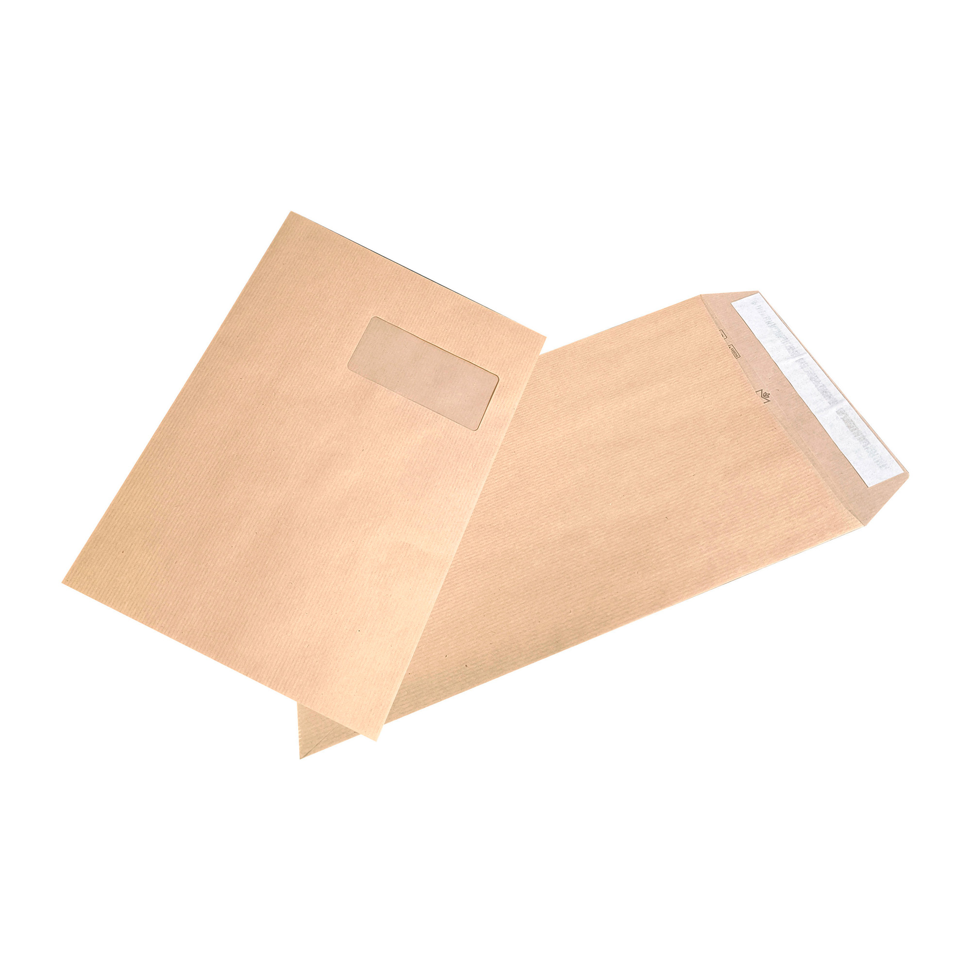 Bolsas kraft marrón de 90 g, reciclables. Cierre con pestaña autoadhesiva con tira protectora. Bolsillos C4. Formato 229 x 324 mm. Dimensiones ventana 50 x 100 mm. Caja de 250 bolsas.