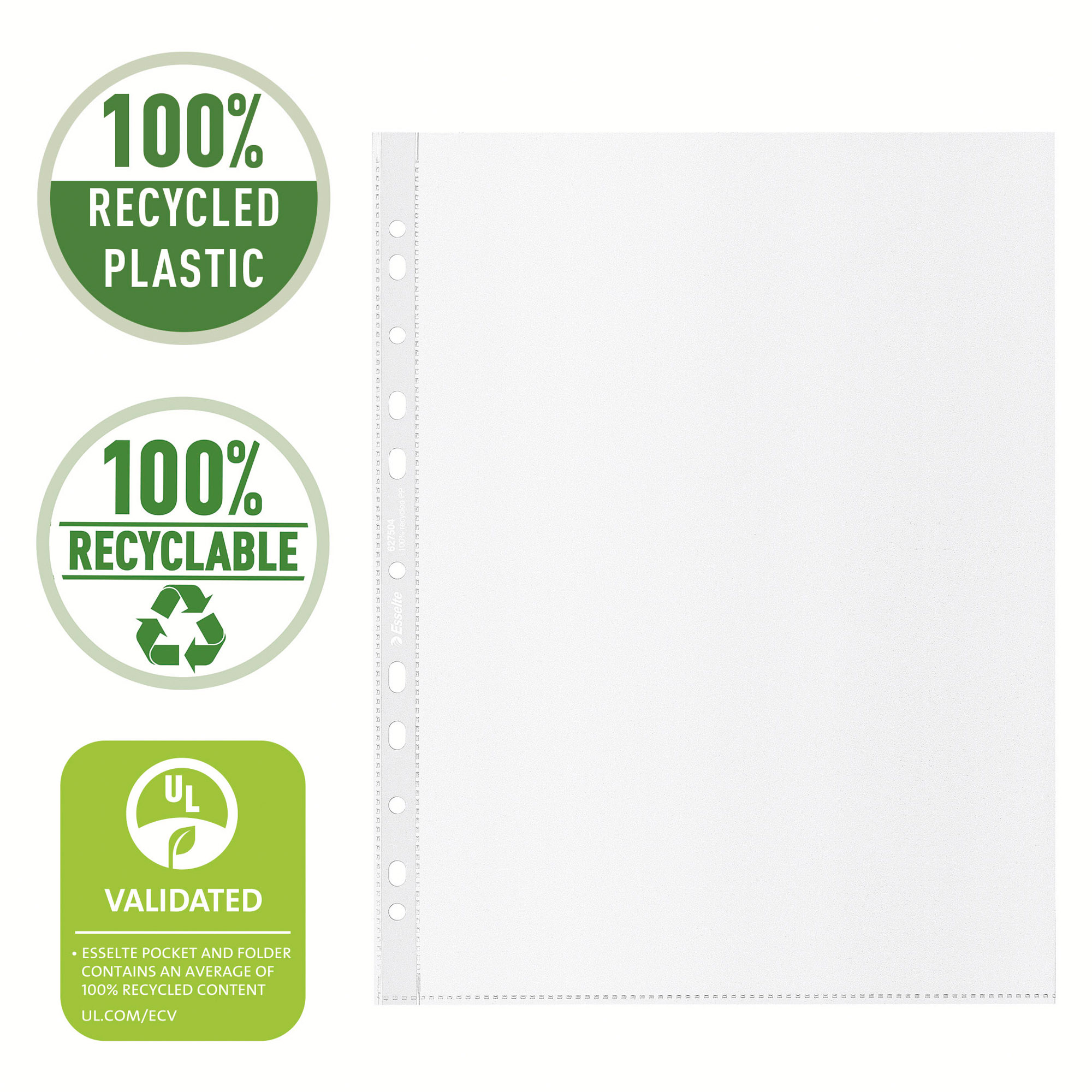 Funda portadocumentos A4 MAXI ecológica para uso diario fabricada con polipropileno 100% reciclado extra resistente. La tira multiperforada permite guardar cómodamente los documentos en archivadores de palanca y carpetas de anillas. Con más capacidad de hojas de papel A4 que las fundas estándar, hasta 80. Todo el producto puede reutilizarse y reciclarse de nuevo. Se presenta en una caja de cartón que también es 100% reciclada y reciclable. Fabricada en Europa. Contenido reciclado certificado por UL.