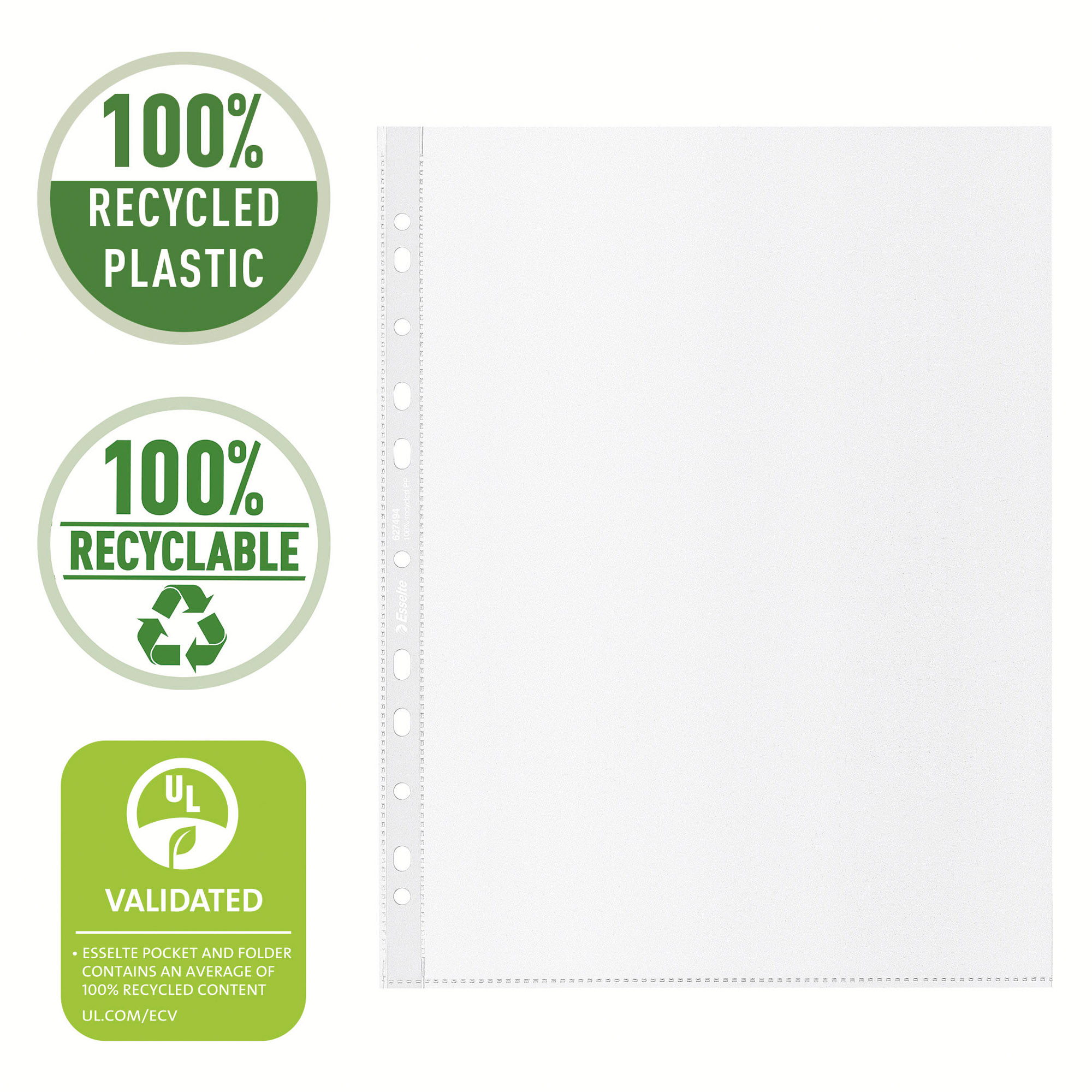 Funda portadocumentos A4 MAXI ecológica para uso diario fabricada con PP 100% reciclado resistente. La tira multiperforada permite guardar cómodamente los documentos en archivadores de palanca y carpetas de anillas. Con más capacidad de hojas de papel A4.