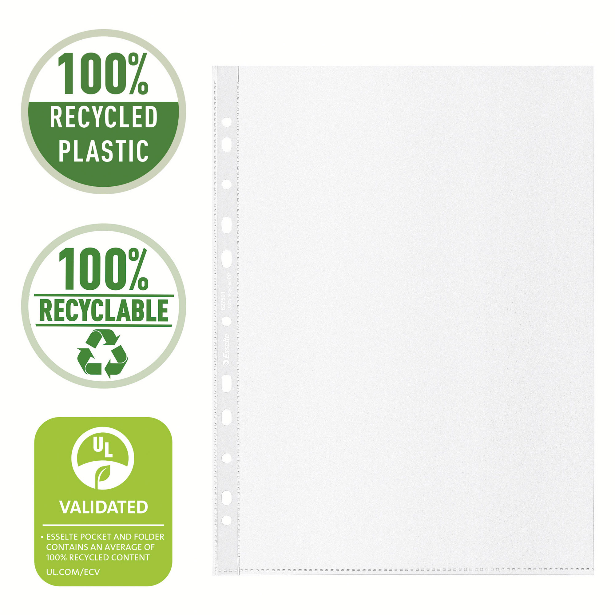 Funda para documentos A4 ecológica para uso diario fabricada con polipropileno resistente 100% reciclado. La tira multiperforada permite guardar cómodamente los documentos en archivadores de palanca y carpetas de anillas. Todo el producto puede reutilizarse y reciclarse.