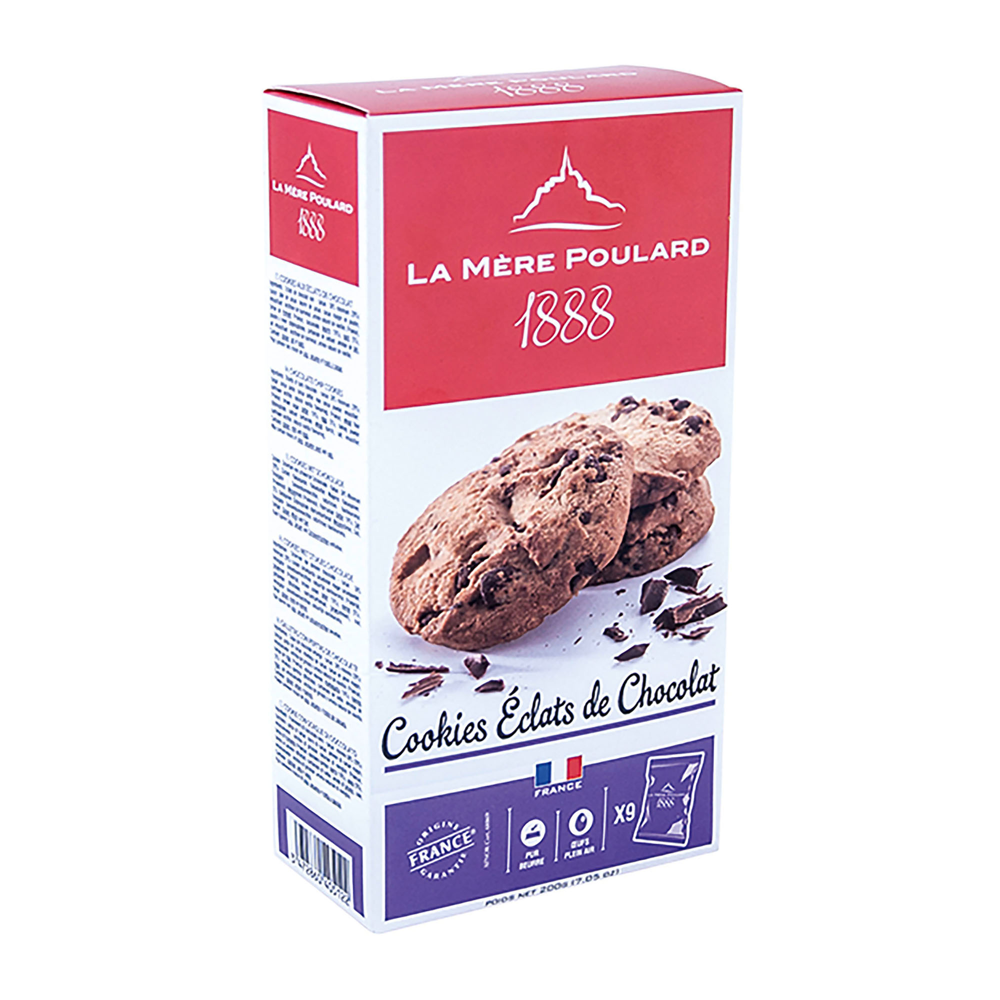 Descripción detalladaGalletas crujientes con pepitas de chocolate. Pura mantequilla. Embolsada individualmente. Caja de cartón 200g.