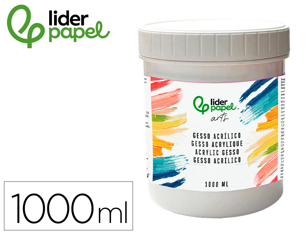El gesso Liderpapel es un aditivo esencial para preparar superficies antesde pintar con acrílicos. Este producto proporciona una base uniforme y te xturizada que mejora la adherencia de la pintura, asegurando resultados profesionales en tus obras. Características: Preparador de Superficie: Crea una base ideal para la aplicación de pinturas acrílicas, mejorando la adherencia y la durabilidad de la pintura. Acabado Mate: Proporciona un acabado mate opaco que es perfecto para diversas técnicas de pintura. Fácil Aplicación: Su formulación permite una aplicación suave y uniforme, asegurando una cobertura completa sin dejar marcas de pincel. Tamaño Generoso: El bote de 1L es ideal para proyectos grandes y frecuentes, ofreciendo una excexcelente relación calidad-precio. Seguridad al Usar Gesso: Utiliza el gesso en un área bien ventilada para evitar la inhalación de vapores. Mantén el producto alejado de fuentes de calor y llamas abiertas, ya que es inflamguantes y protección ocular para evita