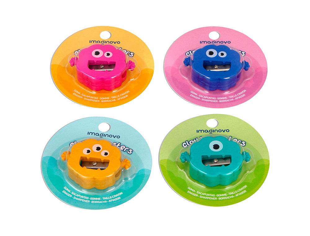 Descripción detalladaGoma de borrar fantasía de Imaginovo. Forma de monstruo. Estas gomas son perfectas para añadir un toque de creatividad y alegría a tus actividades escolares. Con sacapuntas. Expositor de 24 unidades colores surtidos.