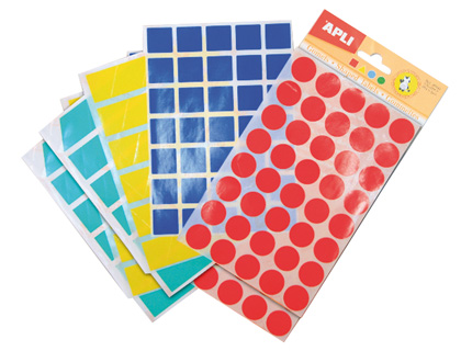 Descripción detalladaEtiquetas de diferentes formas geométricas en tamaño grande. Cículos: 19 mm. Triángulos: 26 mm. Cuadradros: 19 mm. Colores surtidos: amarillo, azul, rojo y verde. 351 gomets. La bolsa de 12 hojas.
