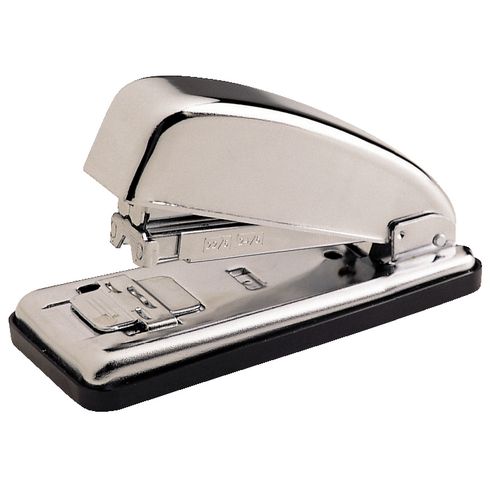 Grapadora de sobremesa metálica color plata cromado.