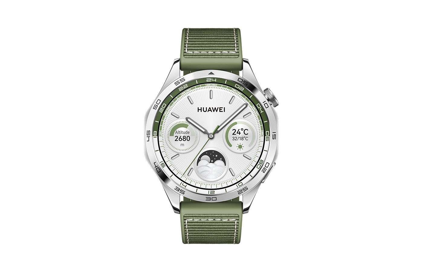 Huawei WATCH GT 4. Diagonal de la pantalla: 3,63 cm (1.43"), Tecnología de visualización: AMOLED, Resolución de la pantalla: 466 x 466 Pixeles. Memoria flash: 32 GB. Wifi. GPS (satélite). Capacidad de batería: 530 mAh. Peso: 48 g. Color de banda: Verde