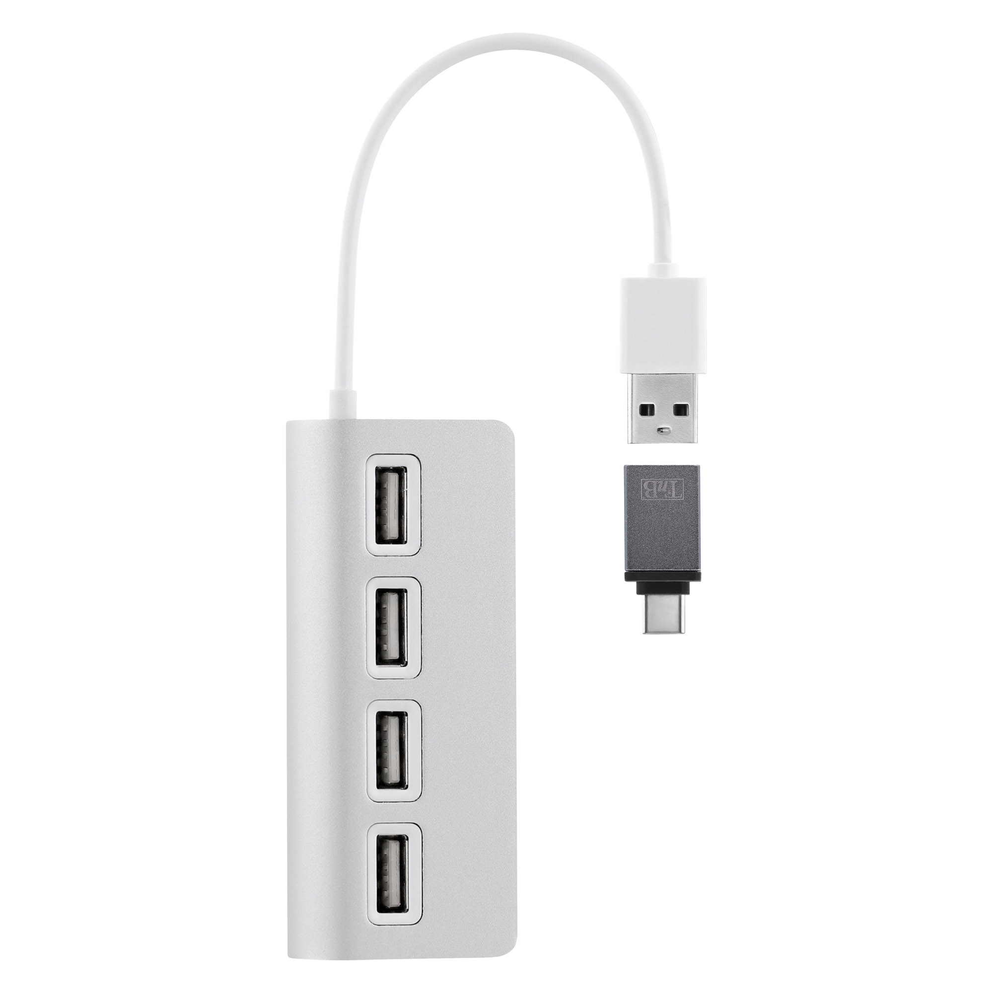 Hub USB-A/USB-C en aluminio a 4x USB-A con adaptador USB-C de TnB