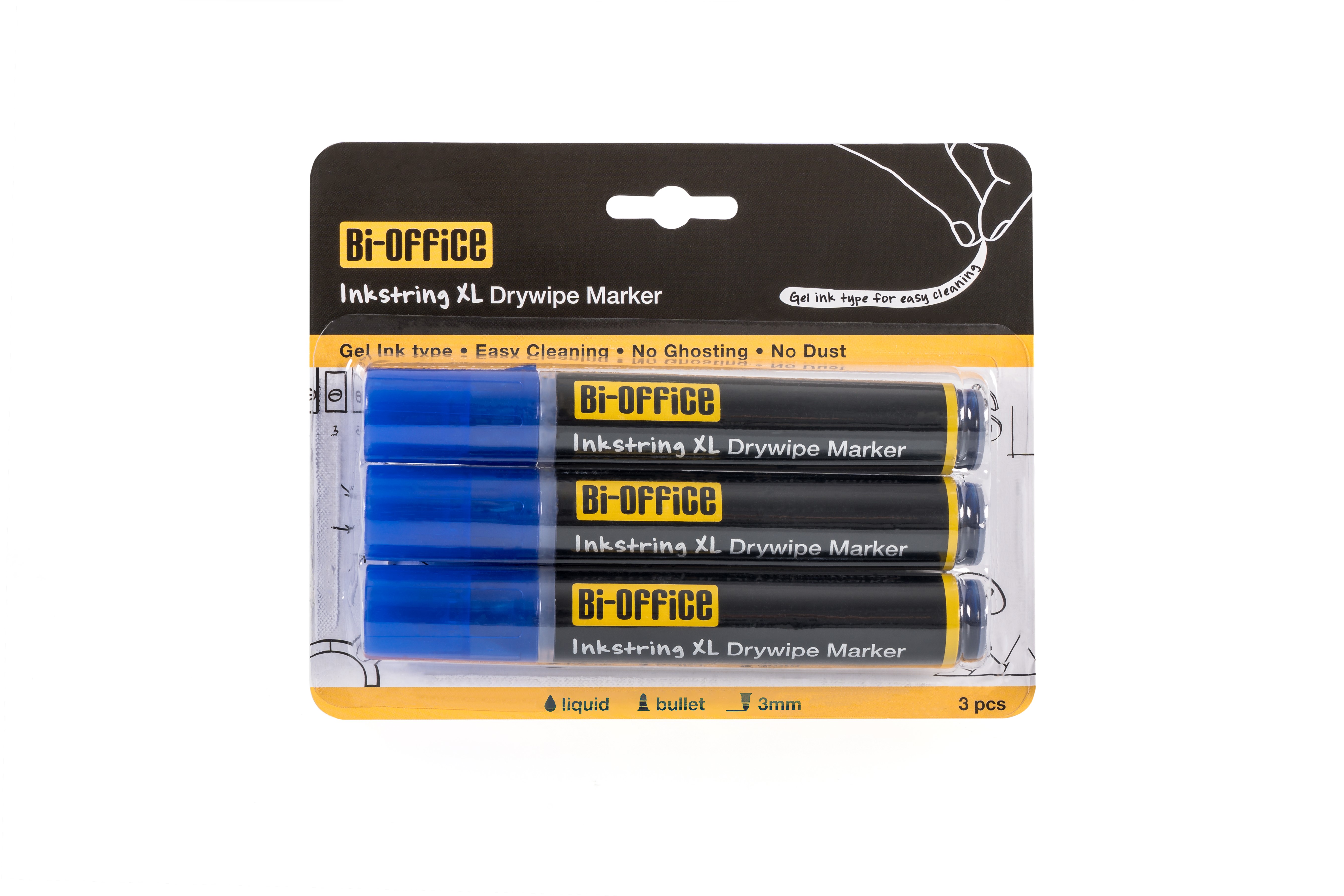 InkstringXL Pack 3 Rotuladores para Pizarra Blanca de Tinta Gel con Punta de 3mm – azul