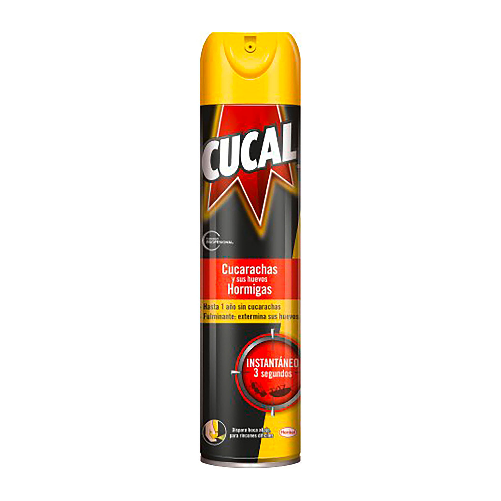 Cucal Aerosol es un insecticida que actúa en 3 segundos y elimina las cucarachas y sus huevos, así como las hormigas y otros insectos rastreros. Soluciona tus problemas de manera instantánea y eficaz.