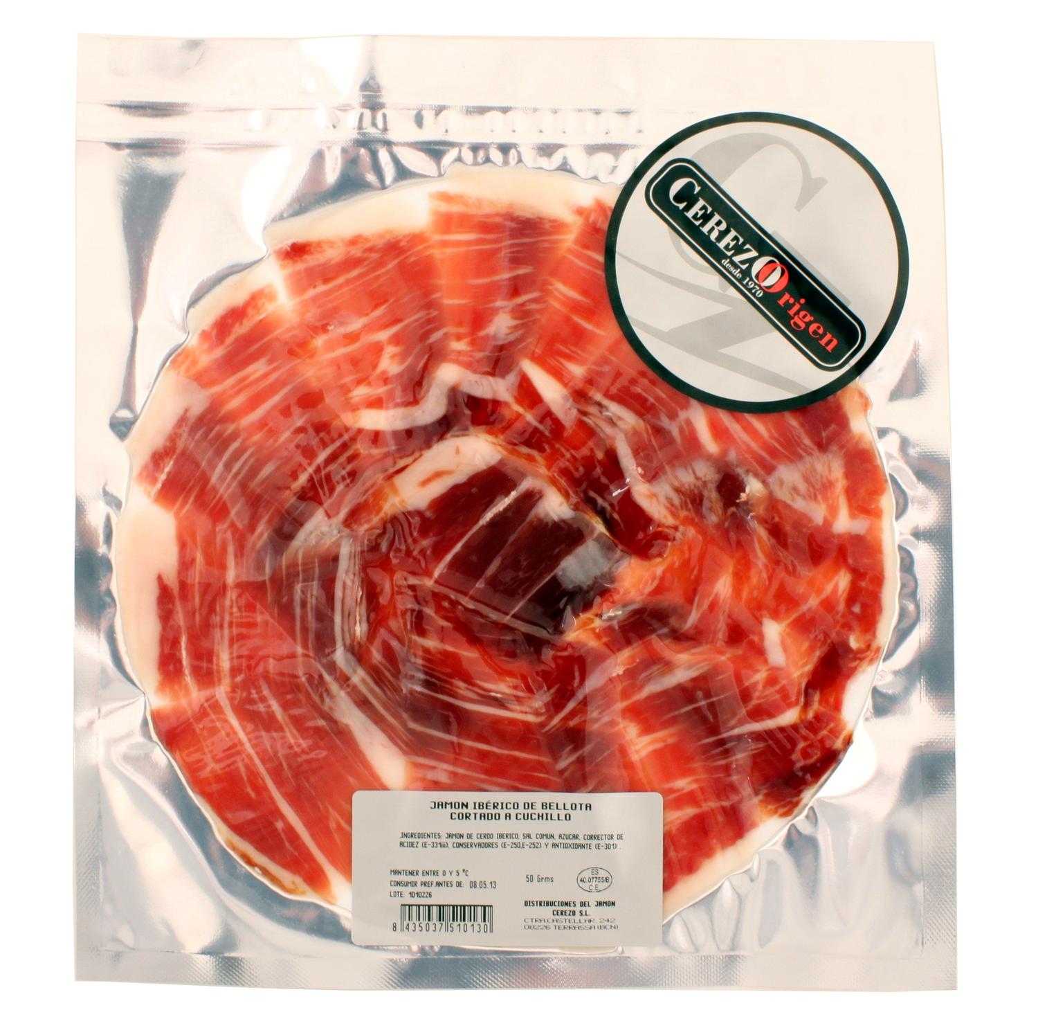 Descripción detallada12 Blísters de 50 g envasados al vacío de Jamón Ibérico 100% cortado a mano.Manténgase en lugares secos y a una temperatura entre 12ºC-18ºC