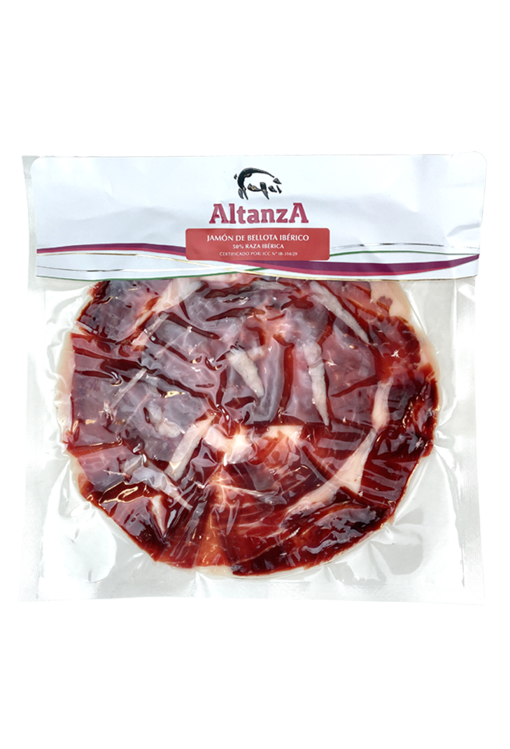 Descripción detallada12 blísters de 80 g aprox.Jamón Bellota 50% Ibérico .Envasado al vacío.Mantener en lugares seco a una temperatura entre 12 ºC - 18 ºC.