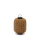 Lámpara de ratán sintético marrón con dos asas para colgarla en dos posiciones.