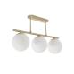 Diseño moderno y las formas geométricas se dan de la mano en la lámpara Mahala con tres pantallas esféricas de cristal glaseado y detalles de acero con acabado latón. La pieza perfecta para añadir luz y estilo allá donde lo necesites.