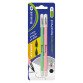 Este lápiz tiene una escritura en tono carbón HB de 0,5 mm de grosor. En el extremo consta de un borrador. Esta punta de grafito especial permite usar el producto sin ser afilado. La forma del lápiz es triangular. Se borra igual que un lápiz normal. Puntas intercambiables.