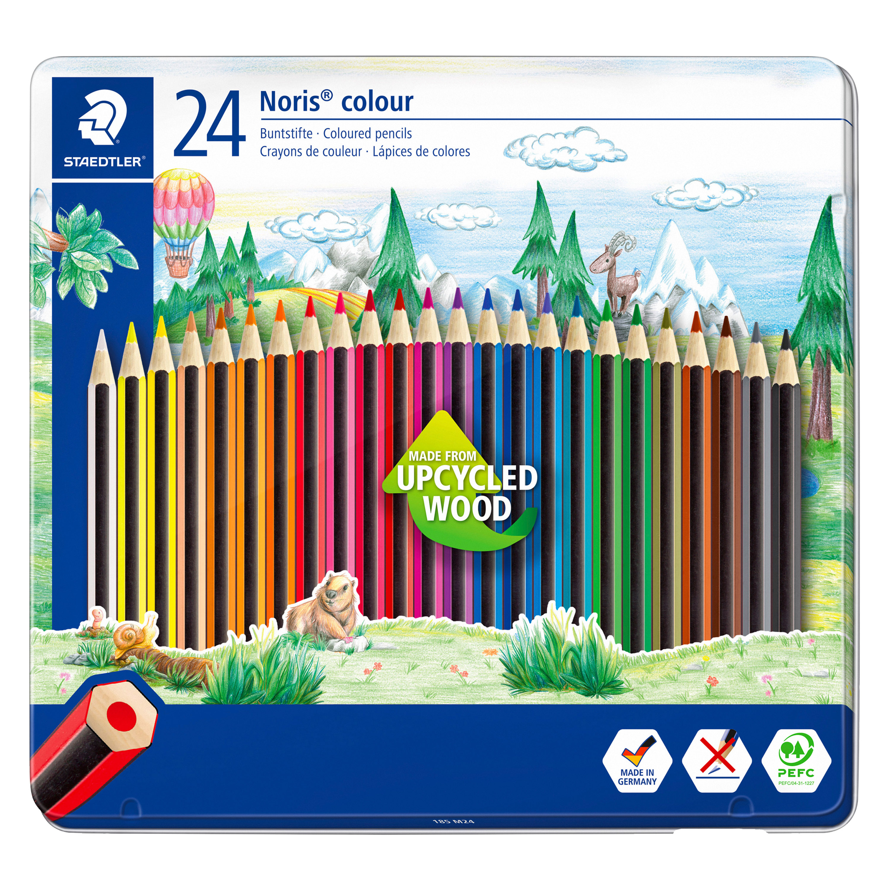 El lápiz de color Noris Colour 185 es hexagonal para un buen agarre. Fabricado en WOPEX®, un proceso de fabricación basado en la extrusión simultánea de varios componentes: el plomo coloreado, la madera y el recubrimiento. Mina ultra resistente. Madera certificada procedente de bosques alemanes gestionados de forma sostenible. - Superficie suave y ergonómica- Fácil de afilar- Cumple con la norma EN 71. Caja metálica de 24 colores surtidos intensos y brillantes. Este producto es eco-responsable porque está certificado PEFC. Etiqueta internacional, PEFC asegura la gestión forestal sostenible y garantiza el origen y la trazabilidad de la madera utilizada en la fabricación de los productos.