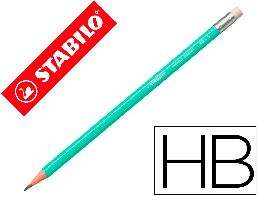 Descripción detalladaLápiz de grafito con goma STABILO Swano Pastel. Dureza HB (media suave) esperfecta para escribir y dibujar ya sea en la escuela, la universidad o l a oficina. Disponible en 6 colores pastel de moda. Calidad STABILO.