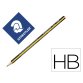 Lápiz de grafito de diseño triangular, fabricado en material ecológico WOPEX. Dureza HB. Cuerpo a rayas amarillas y negras con diseño de estrellas. Superficie suave y alta resistencia a la rotura. Fabricado con madera procedente de bosques de Alemania. Caja con 12 lápices.