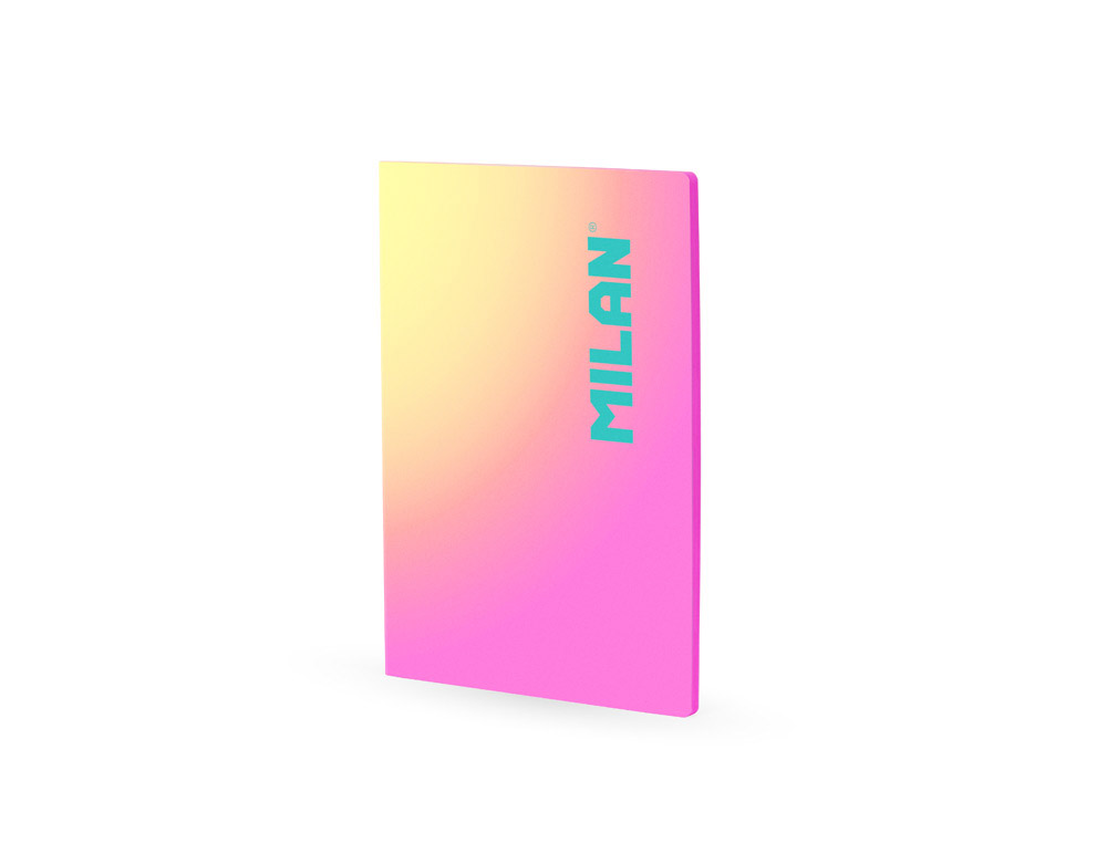 Libreta A4 cosida y encolada con tapa flexible. 48 hojas de papel cuadriculado (5 x 5 mm). Papel de 95 gr/m² de alta calidad, microperforado. Cubierta de cartón flexible y logotipo MILAN brillante en relieve. Color rosa. Colección Sunset: una combinación de colores degradados inspirados en el atardecer mediterráneo, acompañados de detalles en blanco y negro. Medidas: 29,7 x 21 x 0,7 cm.