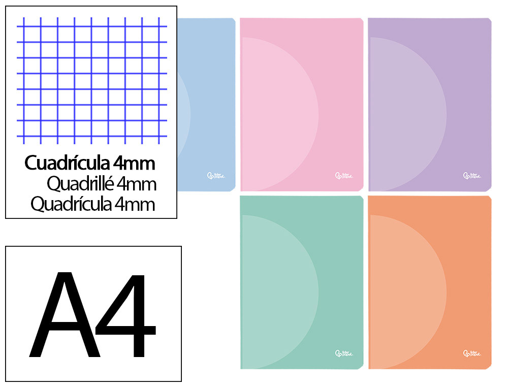 Libreta liderpapel 360 tapa de plastico a4 48 hojas 90gr cuadro 4mm con margen colores pastel surtidos